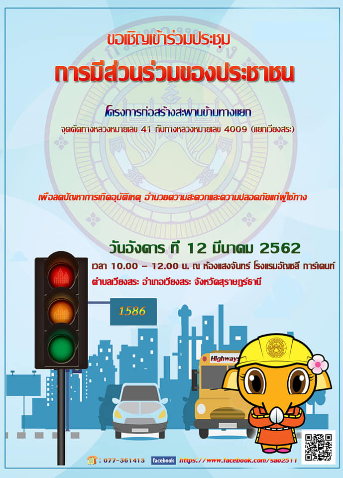 เชิญประชุมการมีส่วนร่วมภาคประชาชน โครงการสร้างสะพานข้ามแยกเวียงสระ |