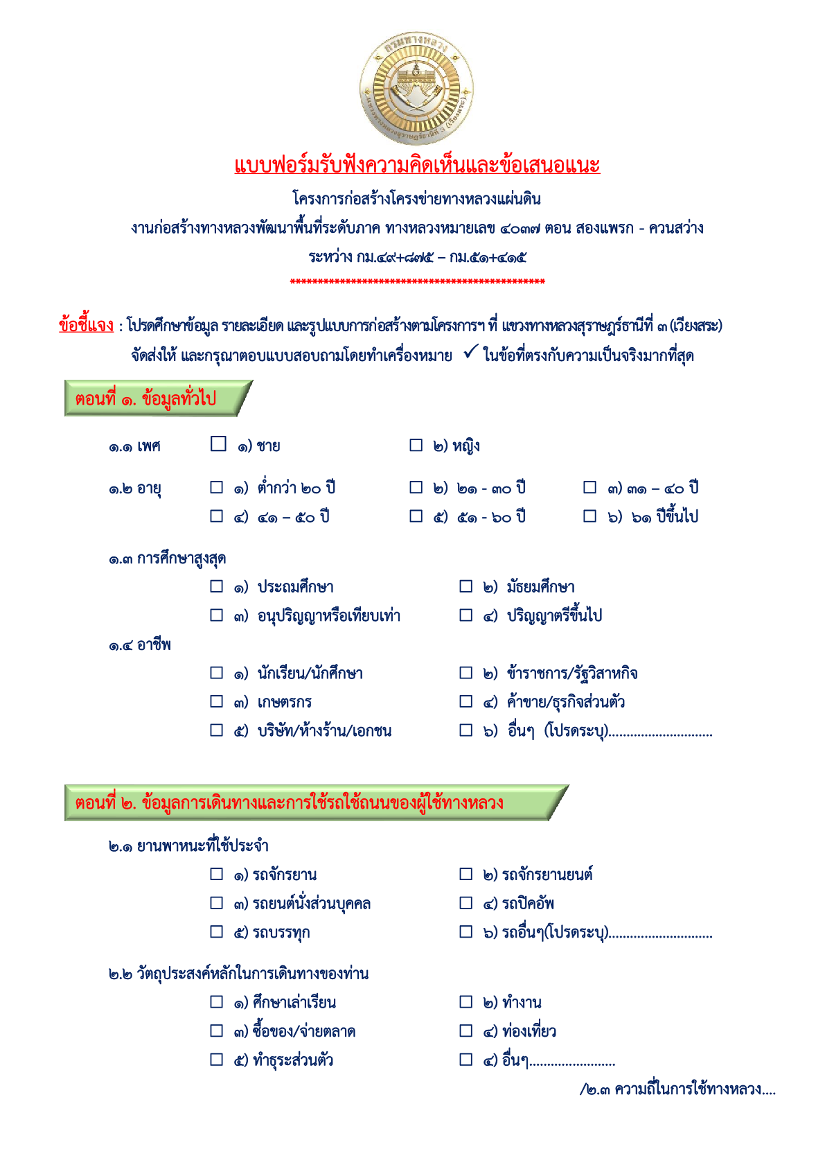 | แบบสอบถาม (กรณีส่งให้ผู้ตอบ) สฎ.3 สาย 40371 แผ่นที่ 1 | 135 | ดาวน์โหลด |