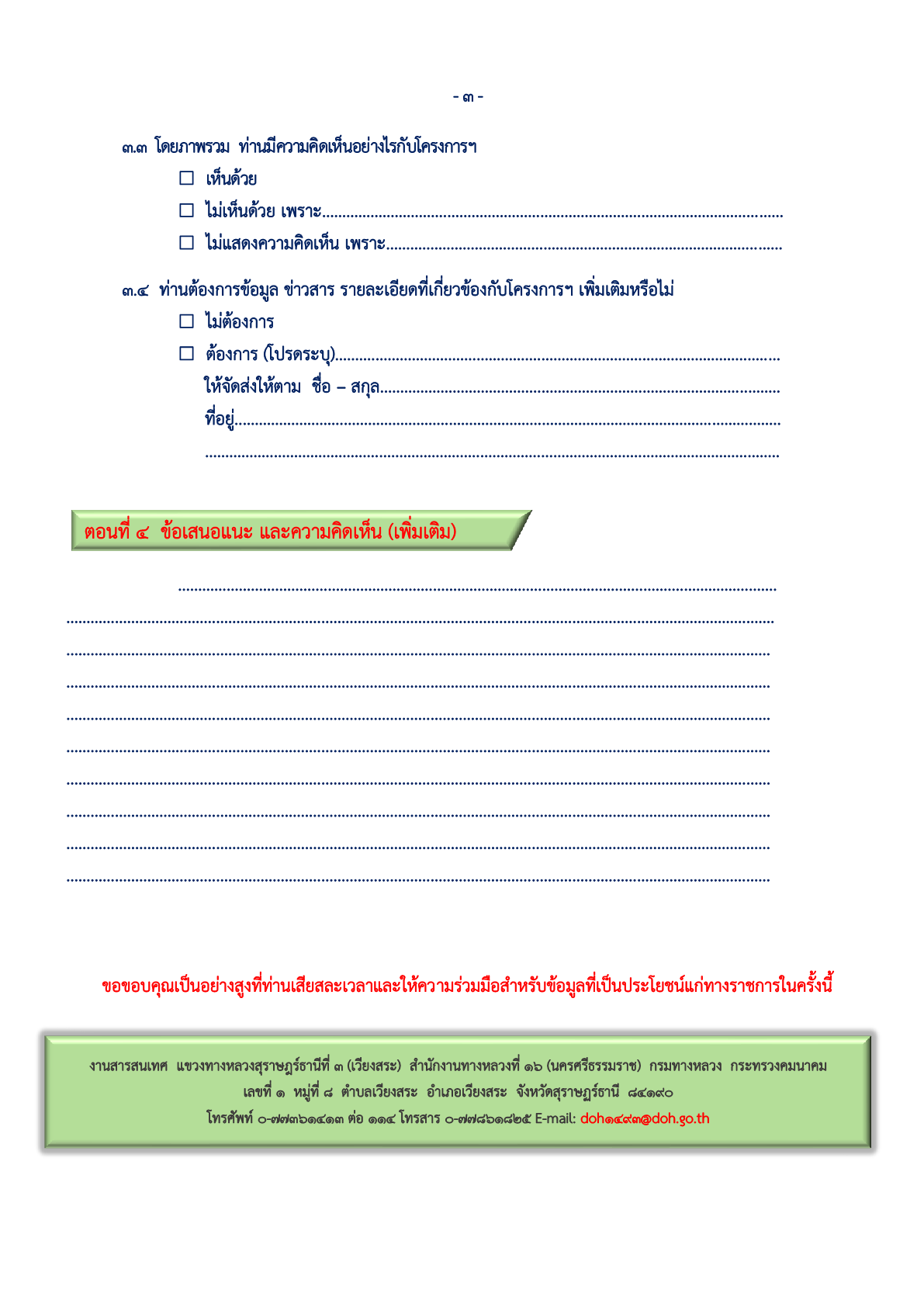 | แบบสอบถาม (กรณีส่งให้ผู้ตอบ) สฎ.3 สาย 40371 แผ่นที่ 3 | 119 | ดาวน์โหลด |
